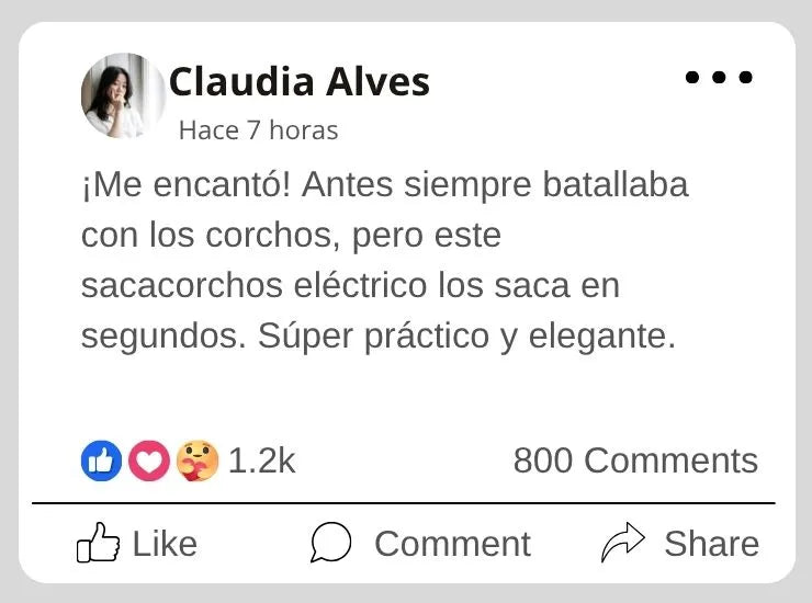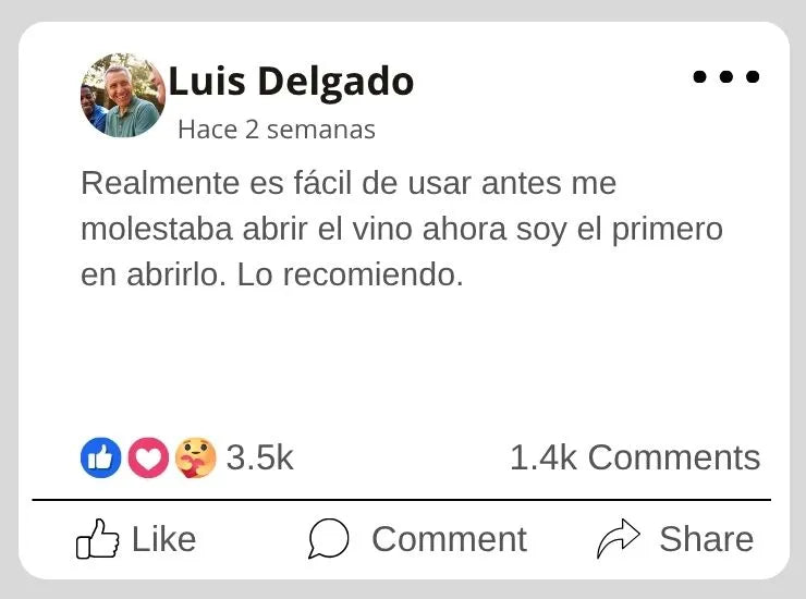 Hasta 40 aperturas de vino por carga. Perfecto para muchas cenas.